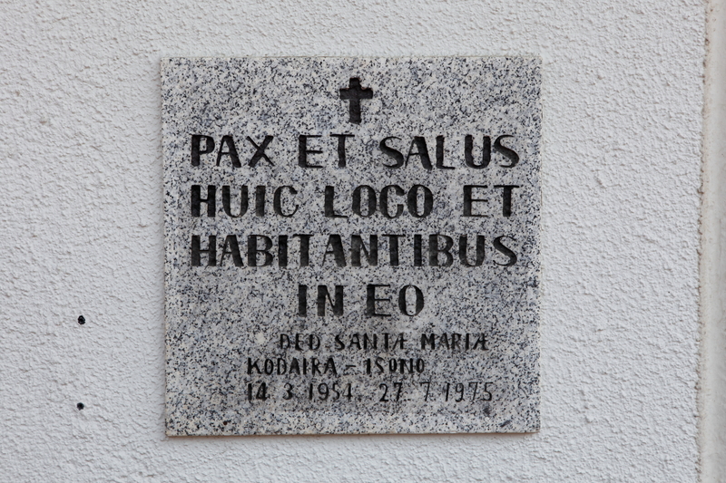 ”PAX ET SALUS HUIC LOCO ET HABITANTIBUS IN EO/この地とここに住む人々の上に平安と救いがありますように 聖マリアに捧ぐ 小平 磯野”