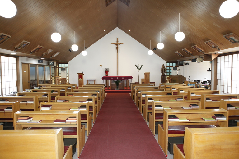 1957年に吉祥寺教会の分教会から小教区として独立した小平教会は、郊外に移り住む人が多くなって、ミサに集まる人が聖堂に入りきれなくなると「もっと大きな聖堂を」と建設積立献金が始まり、1975年に現在の聖堂が献堂され、現在も大切に使われています。